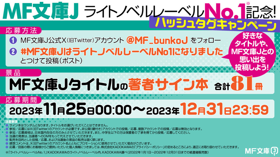 ①MF文庫Jの公式Xアカウント(@MF_bunkoJ)をフォロー