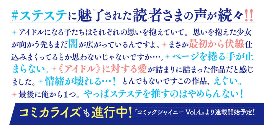 "アイドル"たちの輝きは何処へ向かうのやら……続刊早く読みたいので売れてくれ一言です。