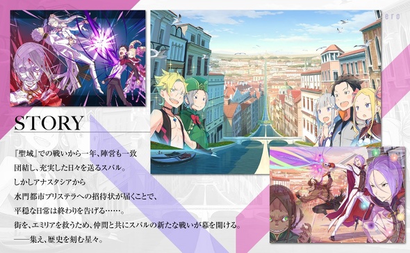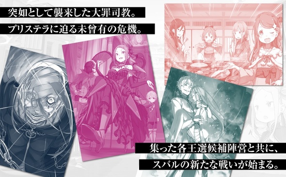 『聖域』での戦いから一年、陣営も一致団結し、充実した日々を送るナツキ・スバル。その平穏な時間は、使者が届けた一枚の書状によって終わりを告げる。水門都市プリステラへの招待状――それが、王選候補者の一人、アナスタシアがエミリアへと宛てた手紙の内容だった。招待を受け、一路、プリステラへと出発したスバルたちは、水の都でアナスタシアを始めとした懐かしい顔ぶれと再会する。奇妙な旧交を温め合い、穏やかな時間を過ごすスバルたち。――その裏で、蠢く悪意の胎動に気付けぬままに。